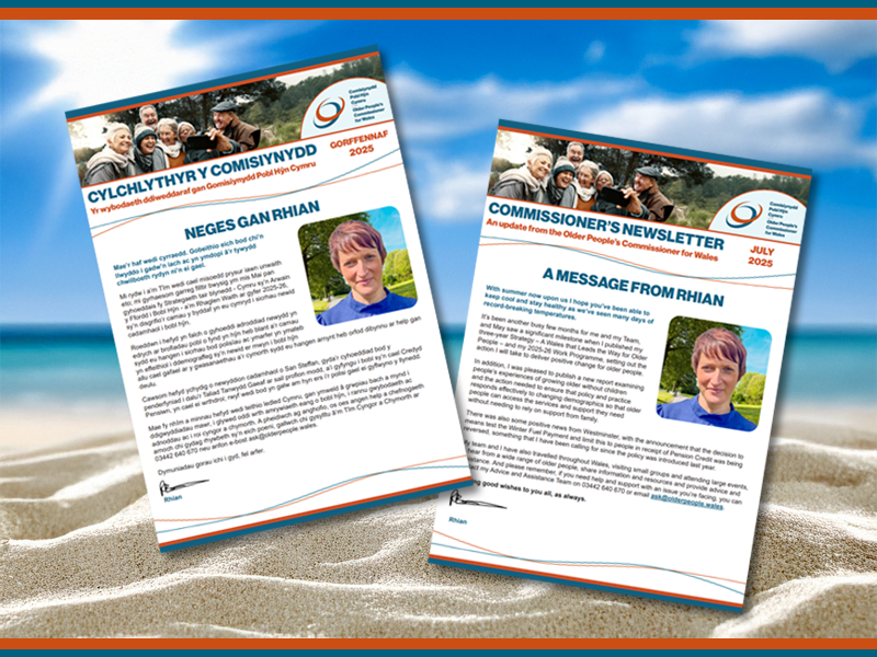 Read the Commissioner’s latest Newsletter and find out more about her work over the past few months to help create a Wales that leads the way in empowering older people, tackling inequality and enabling everyone to live and age well.